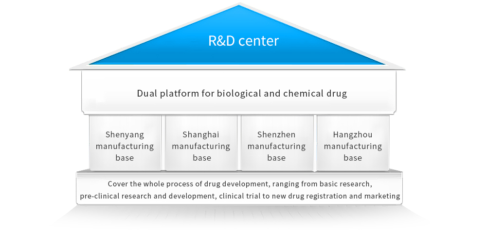 The Group has the National Engineering Research Center of Antibody Medicine approved by the National Development and Reform Commission. Members of its Academic Committee are all composed of authoritative academicians and well-known experts. We established 4 major R&D bases in Shenyang, Shanghai, Shenzhen and Hangzhou, successfully building the dual platform for biological and chemical drug, covering the whole process of drug development, ranging from basic research, pre-clinical study, and clinical trial to new drug registration and marketing.