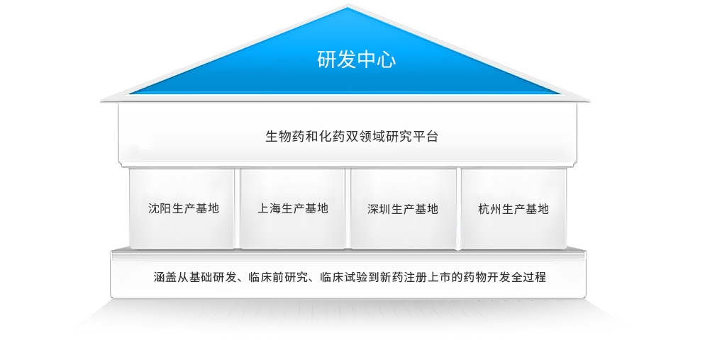 集团拥有国内唯一的国家发展改革委批准的抗体药物国家工程研究中心,该中心学术委员会成员皆由权威院士、知名专家组成。我们在沈阳、上海、深圳和杭州设立4大研发基地,成功建立起生物药和化药双领域研究平台,涵盖从基础研发、临床前研究、临床试验到新药注册上市的药物开发全过程。